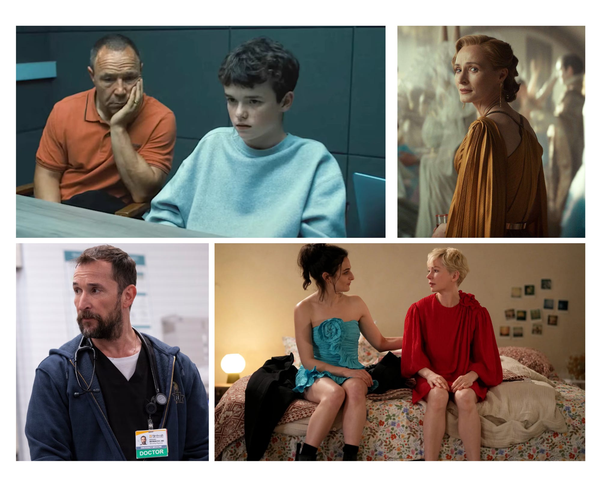 Wat ook duidelijk te merken is, is dat het aantal nieuwe series minder groot is dan het eerder was (Peak TV heeft echt een tijdje terug gepiekt). En alles dat uitkwam, kwam min of meer tegelijk om de deadline van de Emmy Awards te halen. Maar er was opnieuw héél veel tv. Sterker nog, het aantal releases is nog steeds zo aanzienlijk dat het eigenlijk niet bij te houden is. Zelfs niet voor een professionele seriekijker, kan deze professionele seriekijker je vertellen. Zo heb ik tot mijn spijt The Studio (Apple TV+) en de nieuwe seizoenen van Mo (Netflix) en Hacks (HBO Max) nog niet kunnen afkijken, en ben ik nog niet eens begonnen aan seizoen 2 van The Rehearsal en 3 van 100 Foot Wave (alle twee HBO Max). Die staan daarom ook niet in de lijst.